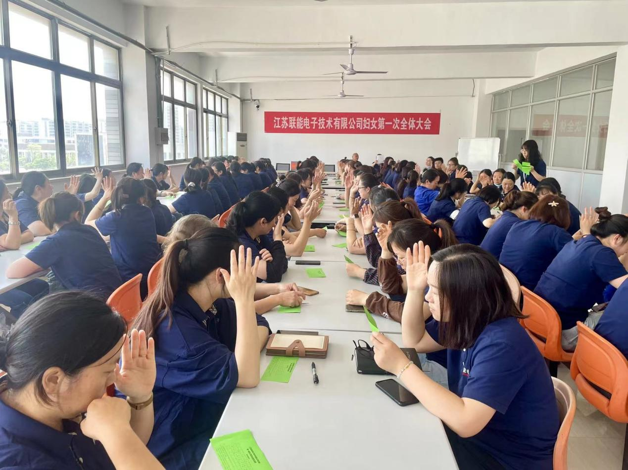 2024年5月23日下午,江蘇聯(lián)能電子技術(shù)有限公司召開(kāi)第一次婦女全體大會(huì),選舉產(chǎn)生婦女聯(lián)合會(huì)第一屆執(zhí)行委員會(huì)主席、副主席及委員。揚(yáng)州城北街道婦聯(lián)主席竇雪出席會(huì)議,聯(lián)能電子98名女性職工到場(chǎng)參加了大會(huì)。